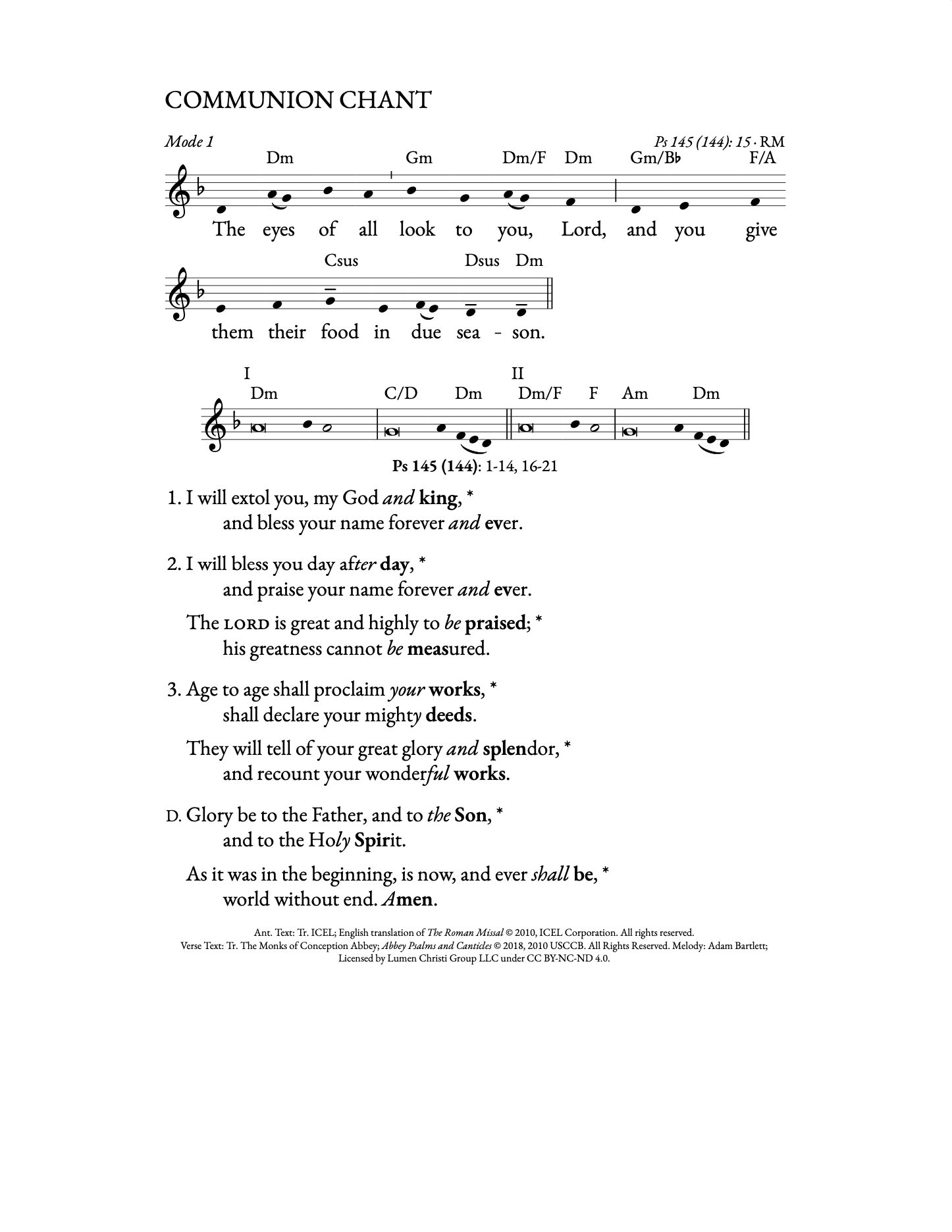 Unlike most other pew resources, the texts of the liturgy that are meant to be sung include complete musical settings